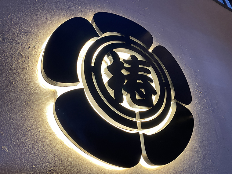 1、門頭及外立面設計:門頭是門店吸引顧客進店的指示牌,在空間展示中占的比例最高。玉椿燒鳥居酒屋的門頭,使用京都古建筑的山墻造型,中間裝飾“椿”的家徽,既表達品牌名稱,又有強烈的復古氣質,極具江戶時代特征。