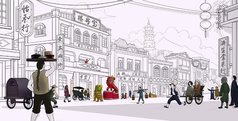 將廣州西關熱鬧的街市、老廣州人提籠遛鳥的生活方式、令人向往的西關大屋,有濃烈廣州氣息的廣式花窗,廣式青磚引入空間設計中。青磚石墻、廣式花窗、店招門牌、路牌指引、飲茶的風俗習慣等元素地道純正植入到整個門店氛圍中,一下子驚艷了上海灘。